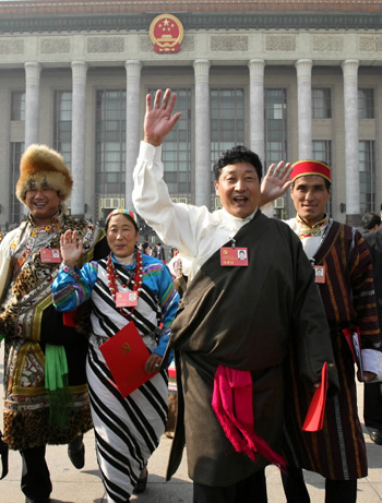 Delegates of the 17th National Congress of the Communist Party of China walk out of the Great Hall of the People in Beijing after the closing session of the congress October 21, 2007. The conference elected a new central leadership for the Party and endorsed a political declaration to chart the country's development. [Xinhua]