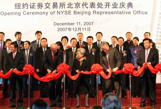 NYSE was the first foreign exchange to receive approval from the Chinese government to open a representative office in China.