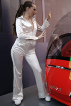 A staff member speaks next to a Ford Eco Boost car at the Auto China 2010 in Beijing April 23, 2010.