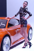 Model poses next to an Audi car