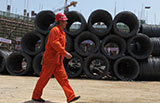 A staff member of Shangqiu branch of Bank of China inspects the burnt cash in Shangqiu, Henan province, July 3, 2012. [Photo/CFP] |