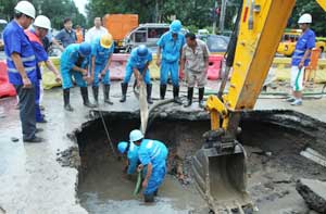With persistent rains battering Beijing, the number of collapsed pavements has been soaring.