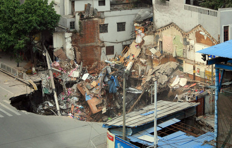 At least three buildings collapsed on Monday afternoon after subsidence in Guangzhou, capital of south China's Guangdong Province.