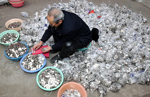 Yang Wei (left) and Wang Xu pose in their photo studio in Beijing, Jan 11, 2016. [Photo/Xinhua] |