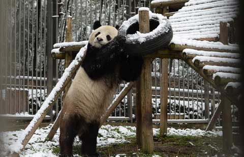 A robot welcomes guests to the wedding ceremony at a robot factory in Shenyang, Liaoning province, on Jan 20, 2016. [Photo/CFP] |