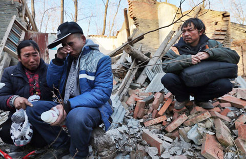 Jia Bing jumps down from a platform after she painted a mural in Xi'an, Shaanxi province, Dec 22 2015. Jia is a self-employed painter who once worked at a cartoon company. The post-80s artist grew tired of working there and left the cartoon company after three years in 2013. [Photo/CFP]
