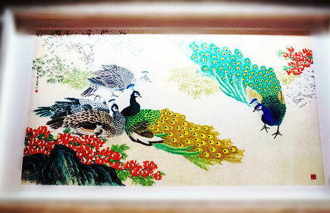 London Sotheby's employee Melica Khanssari, displays a 10.10 carat internally flawless blue diamond in central London, March 15, 2016. The stone, which is the largest oval fancy vivid blue diamond ever to appear at auction, is expected to fetch between $30-35 million at the auction house's Magnificent Jewels and Jadeite auction in Hong Kong on April 5. [Photo/VCG]
