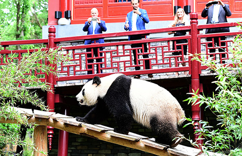 Jiang Qiuju, a single mother-of-two, showcases an innovative hand-made item at Shiku village, in Hongtu township of Enshi city, Enshi Tujia and Miao autonomous prefecture, Central China's Hubei province, on May 30. [Photo/VCG] |