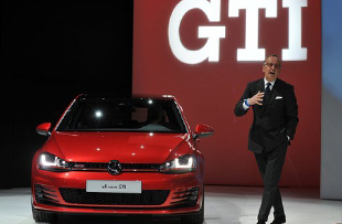 Walter de Silva, Head of Group Design for Volkswagen AG, addresses the media about the new Volkswagen GTI at the 2013 New York Auto Show at the Javits Center in New York.