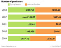 Orders placed at China's largest international trade fair, running until May 5, will likely stabilize in view of recent sharp export declines.