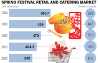 China's retail sales for the week-long Spring Festival holiday ending Thursday rose 13.3 percent from the corresponding period last year despite falling luxury goods sales.