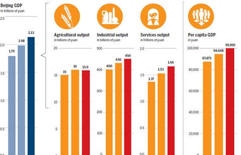 Beijing's gross domestic product in 2014 topped 2.133 trillion yuan, up by 7.3 percent from the previous year.