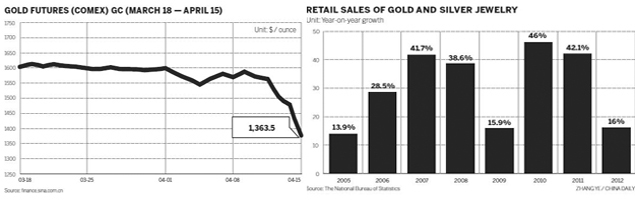 Since mid-April 2013,the gold price freefall has prompted a gold rush in China.