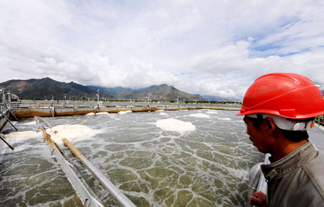 Construction of the first wastewater treatment plant in Lhasa, capital of southwest China's Tibetan Autonomous Region, was completed Thursday, according to local authorities.