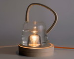 The handcrafted oil lamps incorporate a classic incandescent light bulb in the design. The handmade base for the Recycled Light Bulb Oil Lamp is created from a solid wood half dome.