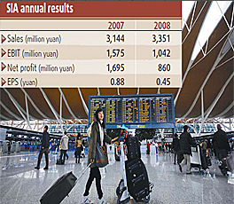 SHANGHAI: The Shanghai International Airport (SIA) has posted a 49 percent fall in 2008 net profit, largely due to significant spending on a new terminal and runway.