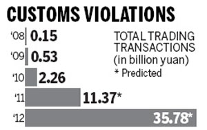 The country's customs officials seized as many as 37,000 pieces of mails and express mails containing counterfeit items from June to December 2009.