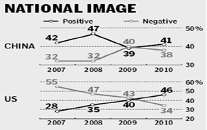 China's image has seen an upswing after hitting a low last year, a BBC sponsored poll said on Monday.