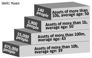 Beijing is home to the largest number of the country's wealthiest lot, with 151,000 people owning more than 10 million yuan ($1.46 million) and about 94,000 people with more than 100 million yuan in personal assets, according to a recent report.