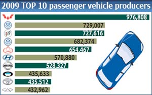 China's passenger vehicle market ended last year with a 59 percent year-on-year sales increase to surpass the United States as the world's largest auto market for the first year, thanks to the central government's stimulus package.