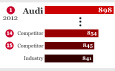 The sales of FAW-VW Audi surpassed 400,000 units in 2012, up 30 percent year-on-year, achieving a leading edge of 100,000 units over its competitors.