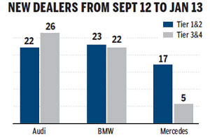 A recent report by Morgan Stanley says premium German carmakers BMW and Audi continue to outpace Mercedes-Benz in network expansion.