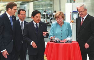 Volkswagen Group China impressed German Chancellor Angela Merkel by making people a priority when she visited an FAW-VW plant in Chengdu, Sichuan province, on July 6.