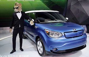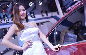 Models are pictured on March 23, 2014 at the Hainan International Auto Show in Haikou city, South China's Hainan province.