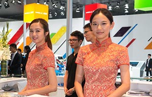 Carmakers' receptionists are pictured at the on-going 2013 Guangzhou auto show.