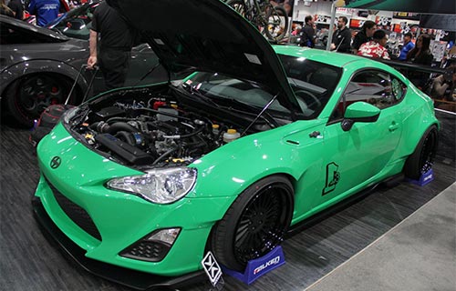 A modified Scion FR-S, known as Toyota 86 in Chinese market, is displayed at the SEMA Show taking place Tuesday through Friday in the United States.