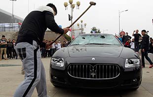 Owner of the smashed $423,000 Maserati Quattroporte said the trader cheated him by installing used parts.
