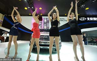 Models pose at the 12th Qingdao auto show that started on May 14 in Shangdong province.