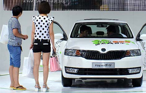 Models poses at the Yangzhou auto show in Jiangsu province on May 17, 2013.