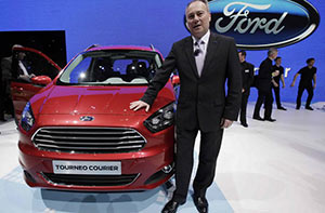 The new Ford Tourneo Courier car is seen during the presentation at the Ford stand during the 83rd Geneva Car Show at the Palexpo Arena.