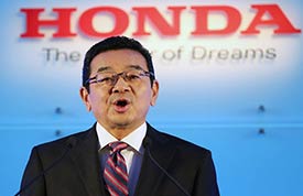 To illustrate his vision for a turnaround at recall-slammed Honda, Takahiro Hachigo, the new chief executive, showed video footage set to a light-hearted 50s-style rock music of happy people with Honda products.