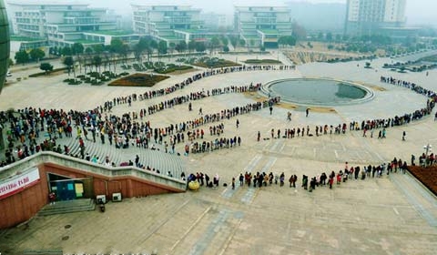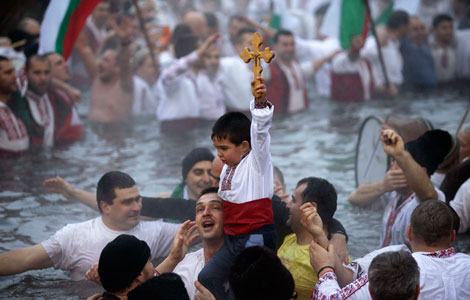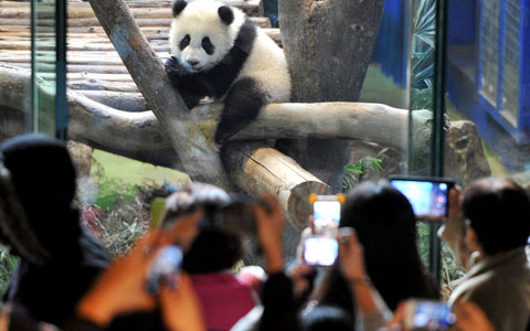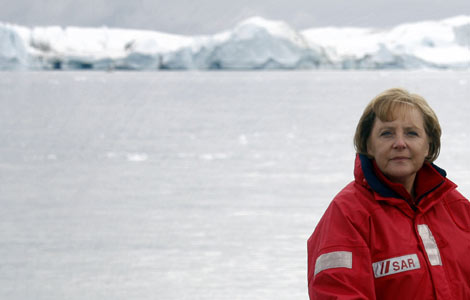Sculptor Jonathan Bouchard of Canada poses near a sculpture at the ice bar of the Brussels Ice Magic Festival December 17, 2013. [Photo/Agencies]