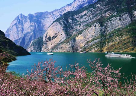 Ships sail through the Xiling Gorge, a part of the Three Gorges, in Zigui County, Central China's Hubei Province Monday March 20, 2006. [Xinhua]