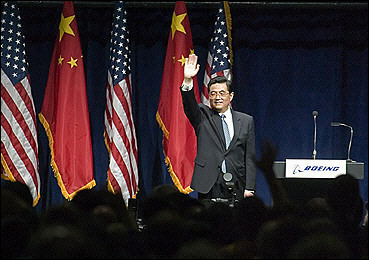 During his speech at Boeing Corp, President Hu sought to soothe tensions over