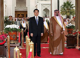 Jintao and Emir Saud al-Thn are at a welcoming ceremony in Riyadh