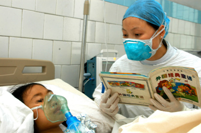 to a girl with respirometer in a hospital in Suining, southwest China's