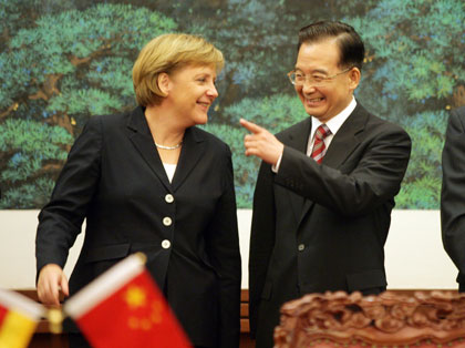 Merkel, and her host, Chinese Premier Wen Jiabao, were present at the signing