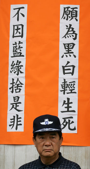 James Soong, chairman of Taiwan's minority People First Party, holds a sit-in