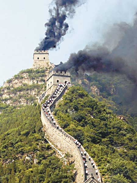 Juyongguan section of the Great Wall yesterday, not as a sign of a threat