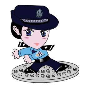 Jingjing, depicted as a male cartoon officer, and Chacha, a female, went to