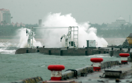 Photo taken on August 3, 2006 shows the big wave in the harbor of