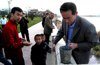 China's Gansu Province, October 22, 2006. A sewerage pipeline released red