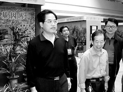 Li Dalun (left) is seen at a local orchid exhibition. [China Daily]
