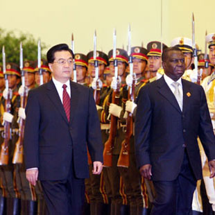 Guinea-Bissau Joao Bernardo Vieira reviewing the honour guard during
