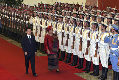 President Hu Jintao review an honour guard during a welcome ceremony at the
