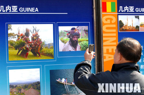 A visitor takes pictures during a photo exhibition about Africa on Wangfujing Street in Beijing, Nov. 2, 2006. Beijing is prepared for the 3rd Ministerial Conference and the Beijing Summit of the Forum on China-Africa Cooperation (FOCAC), due for Nov. 3-5. [Xinhua]